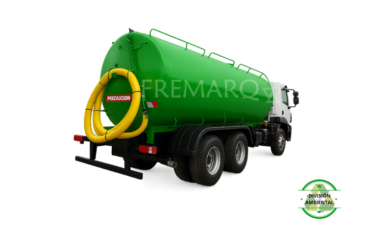 Tanque atmosférico con sistema de succión por vacío especialmente diseñado para recolección/desagote de líquidos cloacales, cámaras sépticas, piletas de petróleo, etc. El almacenamiento se realiza en tanque de acero con entrada de carga de 3″. Descarga por gravedad con angulación del tanque si éste se encuentra sobre un equipo roll off, ó por presión interna de aire en tanque, invirtiendo el ciclo de succión a descarga. Comandos neumáticos desde cabina de camión para accionamiento de la toma de fuerza y comandos mecánicos para operación de succión y descarga.
